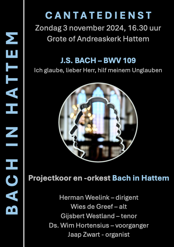 3 november 2024 – BWV 109 Ich glaube, lieber Herr, hilf meinem Unglauben